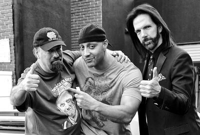 We pulled into the parking lot of the studio where Joel West gave us both bear hugs. We sat down outside with Billy Mitchell and Mark Hoff.