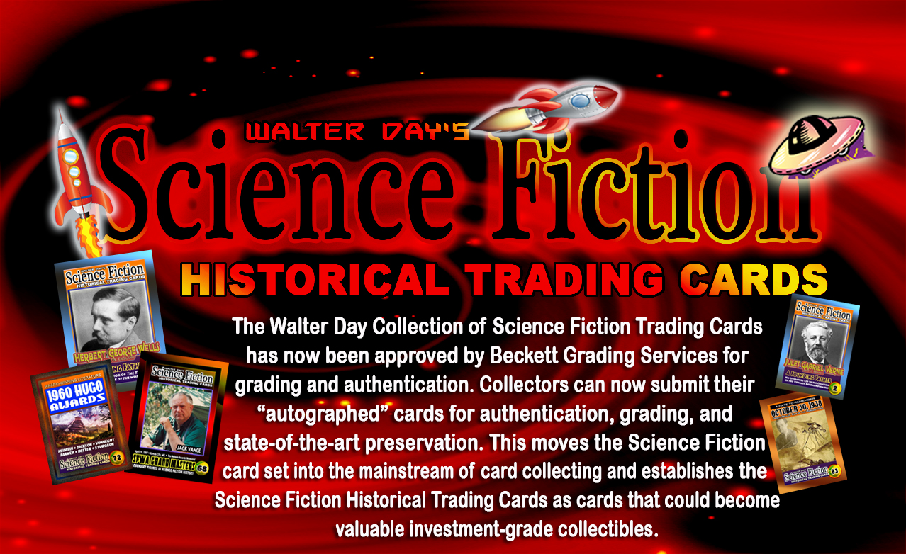 Starting with this May's Nebula Awards Weekend (Pittsburgh, May 18-21, 2017), autographed trading cards that feature science fiction authors will be given the same stellar treatment that has traditionally been afforded to collectible cards that feature sports stars, music icons, or idols of the film & television industries. Beckett Grading Services--the worldwide authority on authenticating and grading rare and valuable sports collectibles, like the 1952 TOPPS Mickey Mantle rookie card and the 1909 T206 Honus Wagner tobacco card--now accepts the Walter Day Collection of Science Fiction Historical Trading Cards for grading as investment-grade collectables.