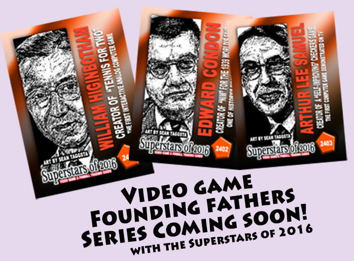 The men who created the first computer programs that supported the birth of the video game industry are rarely honored. Here is a set of cards that brings to light the contributions made by many forgotten men and women. Featuring artwork by Sean (Taggsta) Tagg, of Melbourne, Australia—and sponored by the legendary Eric Tessler, this set will be launched as part of the Superstars of 2016 card set.