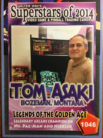 Our next Trading Card Spotlight features Tom Asaki who is displayed on card number 1046, from the Superstars of 2014 Collection. As one of the founding members of the U.S. National Video Game Team, Tom is one of the original players at the Twin Galaxies arcade in the early 1980’s. He was the first to attempt the billion score in Nibbler, with a final score of 838 million points. He can be seen in the documentary