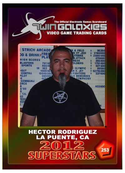 Our next Trading Card Spotlight features Hector Rodriguez who is displayed on card number 253, from the Superstars of 2012 Collection. Hector is also displayed on cards 300F and 2134. Hector is a true competitive gamer and has a very successful gaming resume. He competed in the Nintendo World Championship in 1990. In 2000, he won an all expensed paid trip to the X-Games and entered a Tony Hawk Pro Skater tournament where he finished 6th. He won a Tony Hawk’s Pro Skater tournament in 2001. Hector has numerous world records on games of all kinds on such platforms as PlayStation, Nintendo GameCube and Sega Dreamcast to name a few. He is also a record holder on arcade games such as Track & Field and Jail Break. Hector is a serious weightlifter when he is not playing video games and working.