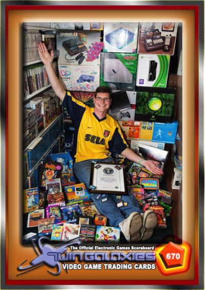 Our next Trading Card Spotlight features Michael Thomasson who is displayed on card number 531, from the Twin Galaxies Superstars Collection of 2013. Michael is also featured on card number 670. Michael is one of the most widely respected videogame historians in the field today. He has written books, published games, helped with other creators on game development and has had articles published in the newspaper. Michael is also the founder and creator of the company “Good Deal Games”. He has been a classic gamer since the beginning and in 2014 became the Guinness Book of World Records as the person with the most collected video games at over 11,000.