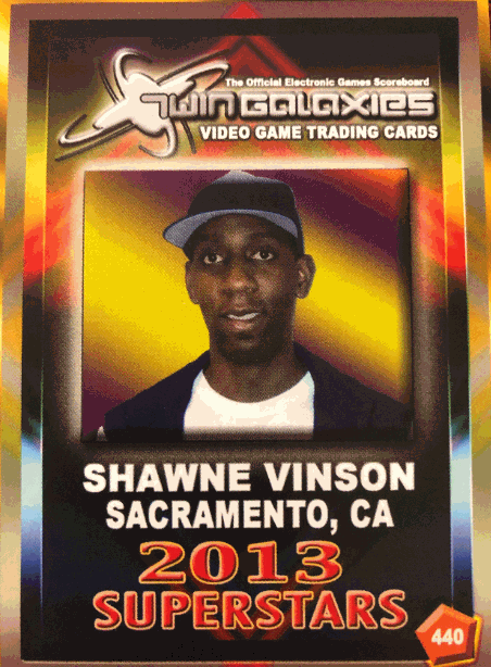 Our next Trading Card Spotlight features Shawne Vinson who currently is displayed on card number 440, from the Superstars of 2013 Collection. He is also featured on cards 1076, 2412, and 3200. Shawne, who is known as the “Nintendo Master of Sacramento, can be seen in the 2016 Edition of Guinness Book of World Records – Gamers Edition. With many world record scores on the Twin Galaxies scoreboard, Shawne is always motivated to break more records and be the best gamer in his hometown. He just beat the two hard mini shooting games, which no one has ever completed, Swan Shooter and Night Strike. It's called the Furu Furu Park and it's on Wii. One of his games he is currently working on setting records for are the puzzle games, such as Super Bust-A-Move. You can see Shawne on his YouTube Channel "ShawneTheGreatGamer". You can also find out more about Shawne on his video adventure story of his gaming career and culture. "Shawne Vinson's Video Game Journeys".
