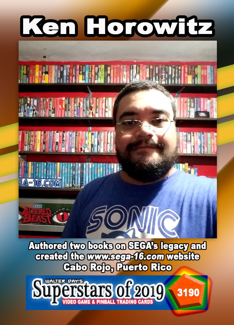 Our next Trading Card Spotlight features Ken Horowitz, who is currently displayed on card number 3190, from the Superstars of 2019 Collection. Ken is a huge historian and a writer of many gaming topics. Sega is his love and he has been writing about it for the last 15 years. Ken runs Sega-16, the world’s largest resource on Sega’s hardware legacy. With over 200 interviews, Ken has talked about and learned almost everything possible about Sega. Beyond dominating Sega, Ken wants to preserve and keep the history of all gaming alive. Ken wants the newer generation of gamers to remember the past as well as the present. If interested, you can order Ken’s books on Amazon by clicking here.