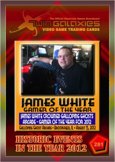 Our next Trading Card Spotlight features James White who is displayed on card number 281, from the Superstars of 2012 Collection. James has been a regular for the past 10 years at the largest arcade in the world, Galloping Ghost Arcade. He has multiple high scores on machines in the arcade and was crowned the ‘Player of the Year’ in 2012 by Dock Mack, owner of Galloping Ghost. Some of those games he is most proud of include ‘Bubbles’ and ‘Us vs. Them’. James, along with his father have contributed their time on numerous occasions at various gaming events. James is one of the most competitive gamers out there and strives to be the best at what he plays.