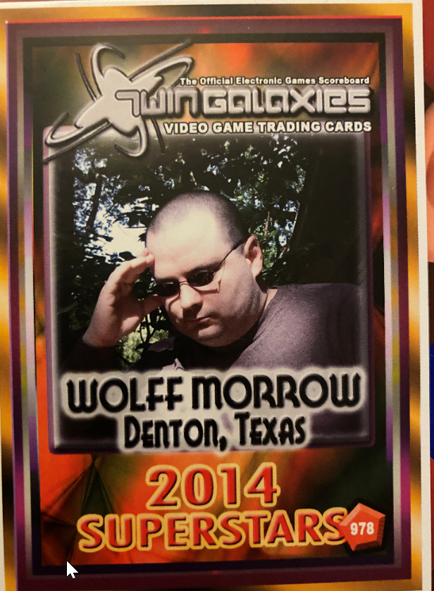Our next Trading Card Spotlight features Wolff Morrow who currently is displayed on card number 978, from the Superstars of 2014 Collection. Wolff is a legendary console world champion. He has posted high scores and won tournaments on many retro consoles such as the NES, SNES, N64, PS1, and PS2. In 1995, he won store champion for the Super NES format at the BlockBuster World Video Game Championship II. Some of his high scores include speed records on Doom 64, SSX, and SSX Tricky. He has been featured on the old G4TV channel for his record on Tomb Raider 2. His favorite game of all time is The Legend of Zelda for the NES. Outside of gaming, Wolff is an expert blitz chess player and former USA champion at correspondence chess. Currently Wolff is in electrical engineering, involving modding consoles for stuff like clean RGB output, better audio, recaps, repairs, and special installations that add in HDMI upscaling internally.