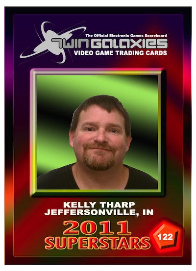 Our next Trading Card Spotlight features Kelly Tharp, who currently is displayed on card number 122, from the Superstars of 2011 Collection. Kelly is also featured on card 2076. Kelly Is a natural arcade champion and world record holder. His claim to fame is how long he can play a game on single quarter. Some arcade games he could play up to 60 hours straight. Games such as Robotron 2084, Defender, and Q-Bert. In December of 2005, Kelly played the arcade game Tapper for over 19 hours and a score of 9,437,400. At that time is was the world record. Everywhere gamers went they would know the initials L.J.M. These would be the high score letter of Kelly Tharp.