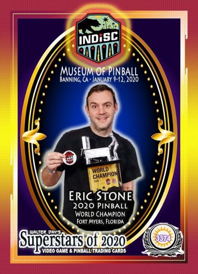 Our next Trading Card Spotlight features Eric Stone who currently is displayed on card number 2630, from the Superstars of 2017 Collection. Eric Is also featured on cards 3374, 3433. Eric is a huge competitor in the pinball world and has set many world records as well. He travels all over the U.S. to play in tournaments and has visited Denmark to play an international pinball competition. In 2017, Eric won the IFPA (International Flipper Pinball Association) US national Championship and 6 other tournaments that year. Eric latest achievement is winning the World Championship in January 2020 in Banning, California. In his personal life Eric is the weatherman for Fox 4 in Southwest Florida.