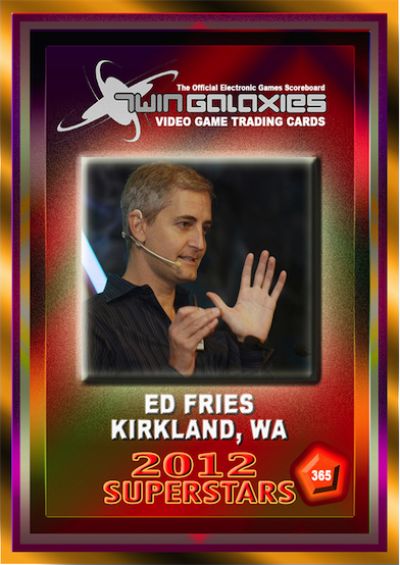 Our next Trading Card Spotlight features Ed Fries, who is displayed on card number 365, from the Superstars of 2012 Collection. Ed has been in the gaming scene since the early 1980’s. He ahs been part of some historic gaming revolutions and games. After working on games for the Atari 800, he joined Microsoft to work with their office software. Ed then moved to the gaming department and was influential in the creation of the Xbox and the flagship game Halo. With his time at Microsoft, Ed published over 100 games for Microsoft Game Studios. After leaving Microsoft Ed has stayed in the gaming industry and created his own company and still makes games today.