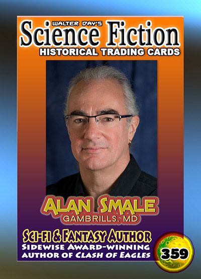 Our next Science Fiction Trading Card Spotlight features Alan Smale, who is displayed on card number 359 in the Science Fiction Collection. Alan is a popular science fiction writer who has had several books and dozens of short stories published so far in his historic career. His novella of a Roman invasion of ancient America, “A Clash of Eagles”, won the Sidewise Award for Alternate History, and his Clash of Eagles novels, set in the same universe, are available from Del Rey. Alan’s short fiction has been published in Asimov’s, Writers of the Future, Vol. 13, Podcastle, and numerous other magazines and anthologies. His non-fiction essays have appeared in Lightspeed and Journey Planet, and he is now a regular columnist for Galaxy’s Edge. Alan is also the co-creator of the educational AstroCappella project, spreading astronomy through a cappella to schools nationwide.