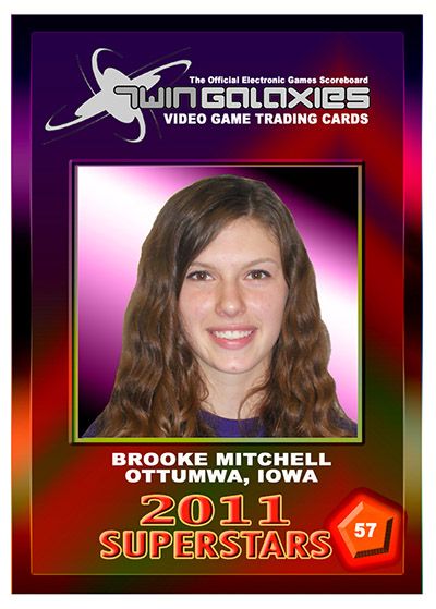 Our next Trading Card Spotlight features Brooke Mitchell-Wurr, who is displayed on card number 57, from the Superstars of 2011 Collection. In 2010 Brooke was breaking all sorts of records on the game Just Dance. She would play as often as she could to break her own records each time. Her system of choice was the Nintendo Wii version. She also broke a record on the Hula Hoop Aerobics game on the Wii that year. Brooke was seen at the 2010 Big Bang award ceremony taking the Hula Hoop championship in that tournament that weekend. More recently Brooke has been playing games like FarCry and Alan Wake.
