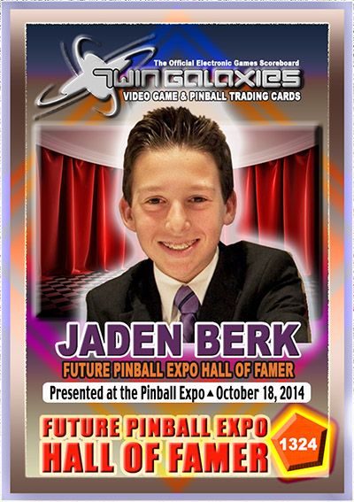 Our next Trading Card Spotlight features Jaden Berk, who is displayed on card number 1324, from the Superstars of 2014 Collection. Jaden has been around pinball in some sort of fashion his whole life. His father, Robert Berk, would create and start a pinball expo that has lasted since 1985. Jaden has attended pinball shows all around the country and has racked up a lifetime worth of pinball playing. Jaden has a knack for cleaning up an old and dirty pinball machine. He also loves modern day consoles and enjoys the PlayStation and XBOX. Now 19 years old, Jaden is working on helping with the Pinball Expo each year and making it the biggest pinball expo in the country. The pinball expo can be found by clicking here. Also check out Jaden’s “The Holy Grail Video Game Store”. This traveling gaming store sets up at the Midwest Gaming Classic in Milwaukee, Wisconsin, the Too Many Games show in Oaks, Pennsylvania, and the Classic Game Fest in Austin, Texas.