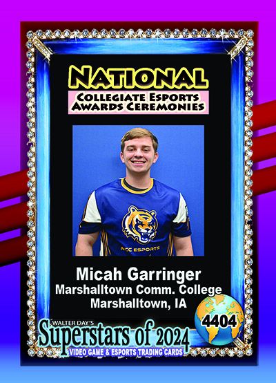Our next Trading Card Spotlight features Micah Garringer, who currently is displayed on card 4404, from the Superstars of 2024 Collection. Micah is a massive Super Smash Bros. and Madden Football competitor. In High School he was the captain of the Super Smash Bros. Esports team and also competed in Mario Kart tournaments. During the fall of 2023, Micah placed to 32 in the country in Super Smash Bros. and looks like continue his dominance in 2024. Ultimately, he would like to become an Esports coach of a professional team and take his knowledge and pass it along to others.