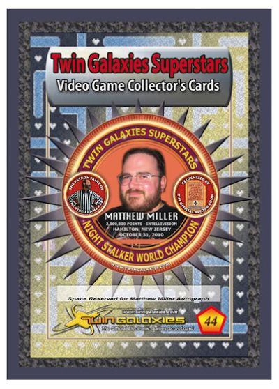 card number 44, from the Superstars of 2011. Matt is also on Cards 1252 and 1646. Matt is an old school as well as modern gamer. He holds 56 Twin Galaxies world records and is the proudest of the record he holds on Night Stalker for the Intellivision. Matt and his fiancée, Michelle, are part of Team Mayh3m (cards 609, 1229) which also holds various records as a team. Matt also co-founded the Mayh3m Militia which is a group of gamers who actively play games to raise money for various worthy causes