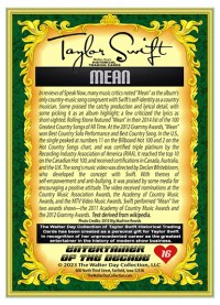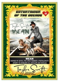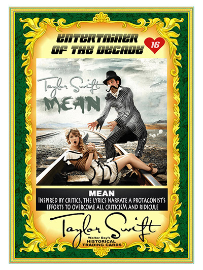 Other Notes: "The TAYLOR SWIFT HISTORICAL TRADING CARD set is a personal art project created by Walter Day to honor the world's most talented performer. Though many sets of the cards have been sent directly to Taylor and her family, the card set can't be distributed to the public because the images and text are unauthorized and violate copyright laws. So, the set must remain in the realm of artistic expression."