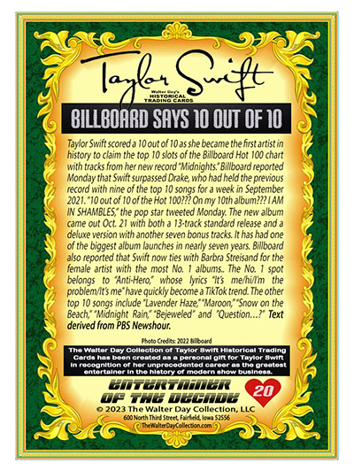 Card ID: 0020 - Taylor Swift - Billboard Says 10 out of 10