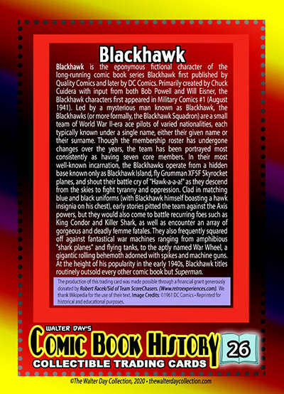 Other Notes: Blackhawk - #156 (January 1961) • ©1961 DC Comics. • Reprinted for educational and historical purposes and for research. The production of this trading card was made possible through a financial grant generously donated by Robert Racek/Sid of Team ScoreChasers. (Www.retroexperiences.com).
