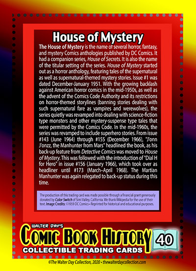 House of Mystery - #92 • ©1959 (November 1959) DC Comics. • Reprinted for educational and historical purposes and for research. The production of this trading card was made possible through a financial grant generously donated by Robert Racek/Sid of Team ScoreChasers. (Www.retroexperiences.com).
