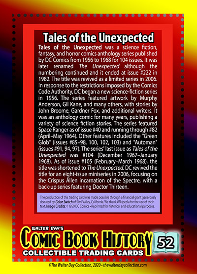 Tales of the Unexpected - #66 • ©1959 (November 1959) DC Comics. • Reprinted for educational and historical purposes and for research. The production of this trading card was made possible through a financial grant generously donated by Robert Racek/Sid of Team ScoreChasers. (Www.retroexperiences.com).