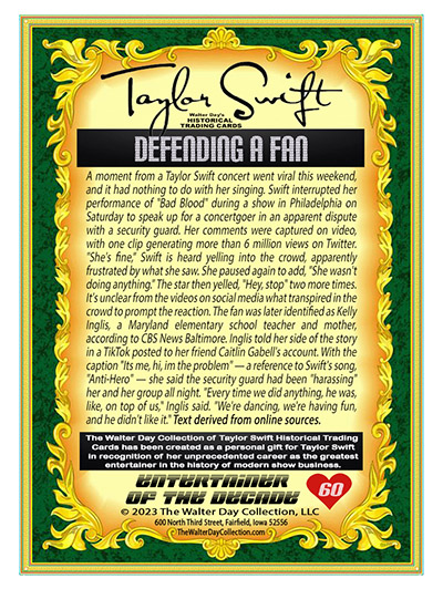 Card ID: 0060 - Taylor Swift - Defending a Fan