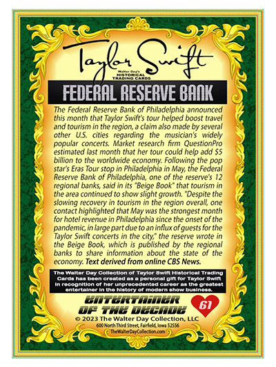 Card ID: 0061 - Taylor Swift - Federal Reserve Bank
