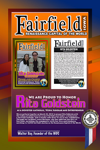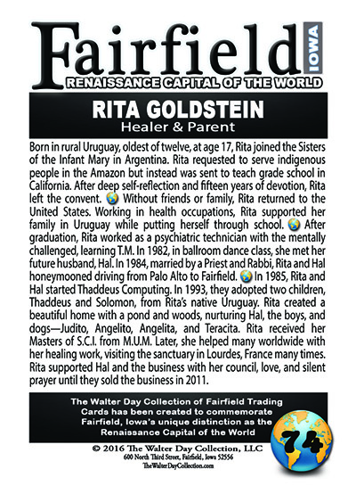 This trading card and award were presented to Rita Goldstein on March 22, 2016.