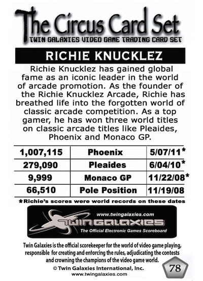 1,000 copies printed on July 18, 2011 for the 2nd Trading Card Ceremonies, which were held at Richie Knucklez Arcade, in Flemington, NJ, on July 31, 2011.