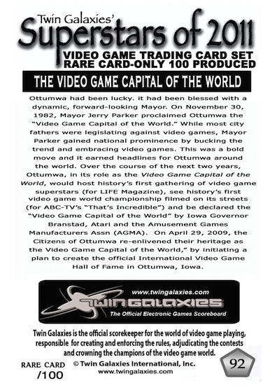 Other Notes: This card was printed as a limited run of only 100 copies. However, due to a slight over-run at the press, there are 115-125 copies in circulation. Each card shows a hand-written registration number on the lower left corner of the backside of the card.