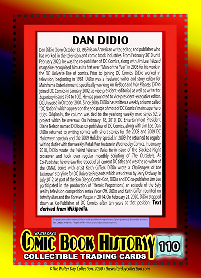 Dan Didio ©1956 DC Comics. • Reprinted for educational and historical purposes and for research. The production of this trading card was made possible through a financial grant generously donated by Robert Racek/Sid of Team ScoreChasers. (Www.retroexperiences.com).