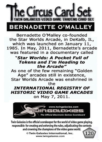 This card is among the series that commemorate historical events or individuals associated with the noted Star Worlds Arcade, in DeKalb, IL.