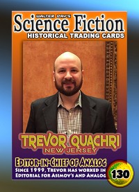 Before taking the reigns of Analog Science Fiction & Fact as editor in 2012, Trevor started off as an editorial assistant in 1999 and worked his way up the ladder at Analog and Asimov’s Science Fiction, under Stanley Schmidt, Sheila Williams, and Gardner Dozois, respectively. On top of that, he’s also been a Broadway stagehand, collected data for museums, and executive produced a science fiction pilot for a basic cable channel. He lives in New Jersey with his fiancé, daughter, and way, way too many comic books.