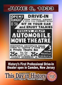 0133 - June 6, 1933 - History's First Professional Drive-In Theater
