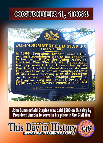 0138 - October 1, 1864 - James Summerfield Staples - He was paid $500 by President Lincoln to serve in his place