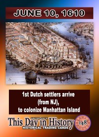 0148 - June 10,1610 - 1st Dutch settlers arrive (from N.J.) to colonize Manhattan Island