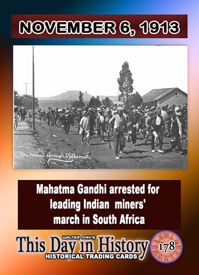 0178 - November 6, 1913 - Mahatma Gandhi was arrested for leading the Indians miners' march