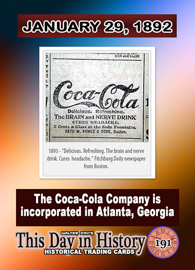 0191- January 29, 1892 - Coca-Cola Company Incorporates in Atlanta, Georgia