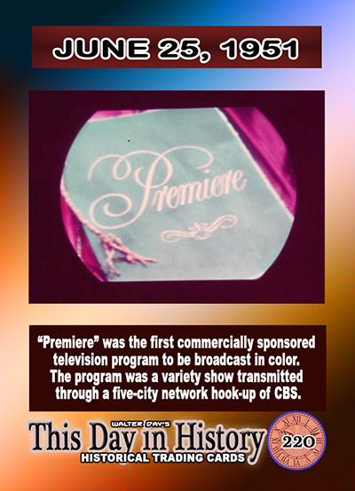 0220 - June 25, 1951 - 'Premiere" was the First Commercially Sponsored Television Program Broadcasted in Color