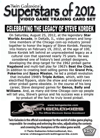 This card is among the series that commemorate historical events or individuals associated with the noted Star Worlds Arcade, in DeKalb, IL.