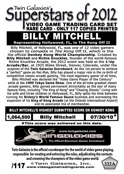 Billy Mitchell card #322A is one of the rarer cards in the Walter Day Collection.
