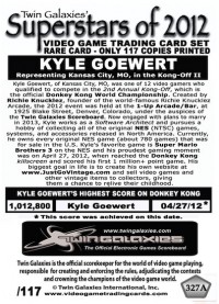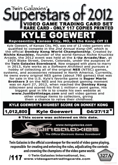 The world-famous Kong Off (the official Donkey Kong World Championships), created by Richie Knucklez and Billy Mitchell, authorized the Walter Day Collection to create a a limited edition series of trading cards that honored the 12 main players competing in the 2012 event at the 1-Up in Denver, Colorado.