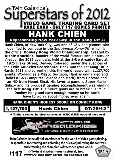 Hank Chien card #351A is one of the rarer cards in the Walter Day Collection.