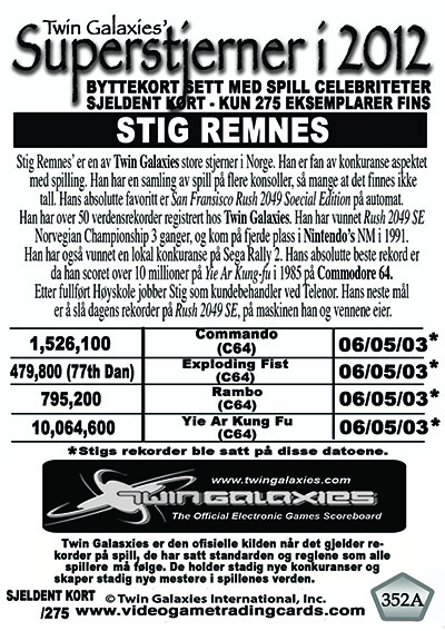 This card for Stig Remnes has the backside text translated into Norwegian and is a limited run card with only 275 copies produced.