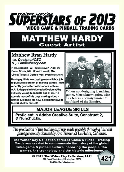 Matthew Hardy is a highly esteemed artist who designed a series of four cards for the Walter Day Collection that resembled somewhat the appearance of a Garbage Pail Kids card.