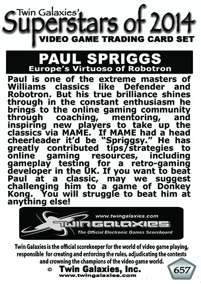 Paul Spriggs is among the elite British gamers and arcade historians who have been selected to receive awards at the UNITED KINGDOM TRADING CARD AWARDS CEREMONIES, to be held later in 2018. Presented by Billy MItchell, Joel West, and Walter Day, the trading card will include an AWARD CERTIFICATE that will be shown here in due time. To see the other trading cards that will be unveiled during this forthcoming ceremony -- or to see the long chronological history of the TRADING CARDS AWARDS TRADITION, go to this link: Chronological History of the Trading Card Awards Ceremonies