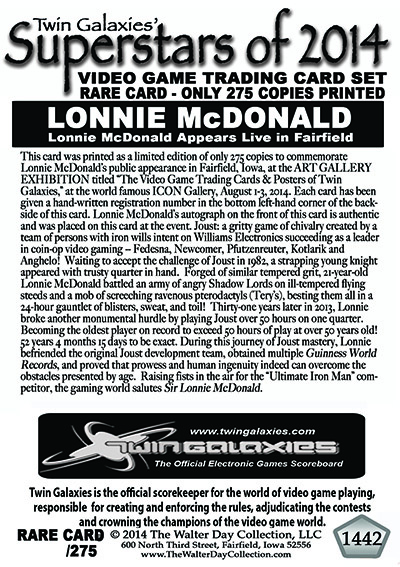 The Lonnie McDonald Appearance in Fairfield card #1442 is part of the LONNIE McDONALD JOUST HISTORY SERIES of cards sponsored by Lonnie McDonald, of Kansas City, MO.