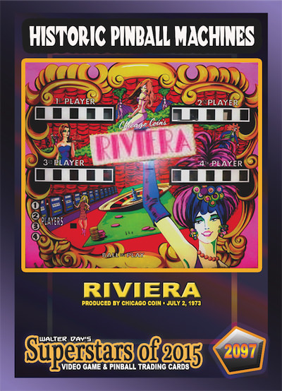 This card was sponsored by Eric Tessler, of La Habra, California. The card was unveiled during the Arcade Expo, at the Museum of Pinball, in Banning, California, January 17, 2015. Brad Frank Restorations—the official copyright holder of all Chicago Coin intellectual property—graciously granted the Walter Day Collection permission to use Chicago Coin intellectual property in making this card. To learn more of Brad Frank's work in keeping the legacy of Chicago Coin alive, go to: http://www.bradfrankrestorations.com/