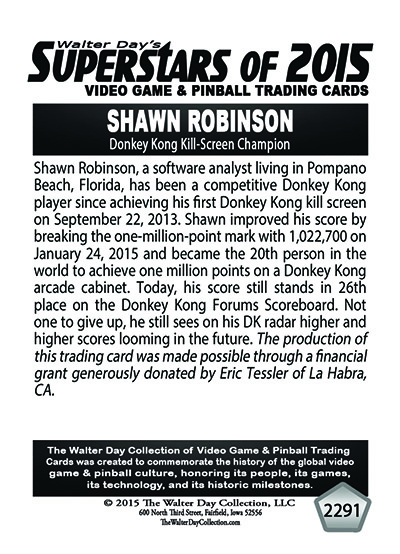 This card was sponsored by Eric Tessler and the award was unveiled at the 2015 Free Play Florida event.