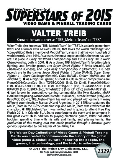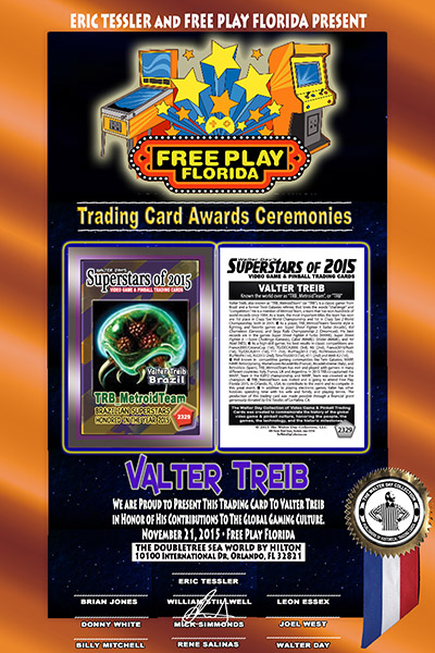 This card was sponsored by Eric Tessler, of La Habra, California. The award and card were presented at the Free Play Florida gaming event, in Orlando, FL, November 21, 2015.