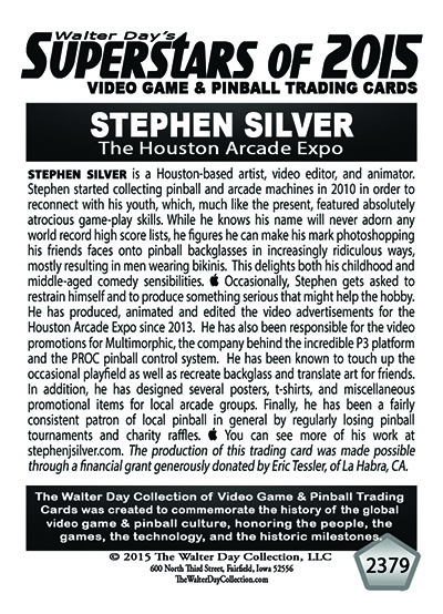 This card was sponsored by Eric Tessler, of La Habra, California. The card and award were presented at the 2015 Houston Arcade Expo, November 21, 2015.