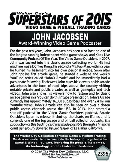 Presented to John Jacobsen at the 2015 Southern-Fried Game Room Expo, Atlanta, Georgia.